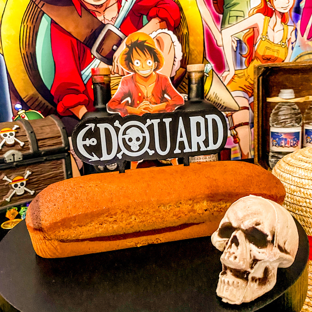 Fêtez votre anniversaire comme un vrai pirate avec ce cake topper personnalisable sur le thème du manga One Piece ! Ajoutez une touche d'aventure à votre gâteau et épatez vos amis avec une décoration unique et originale. (Aventurier confirmé non-inclus.)