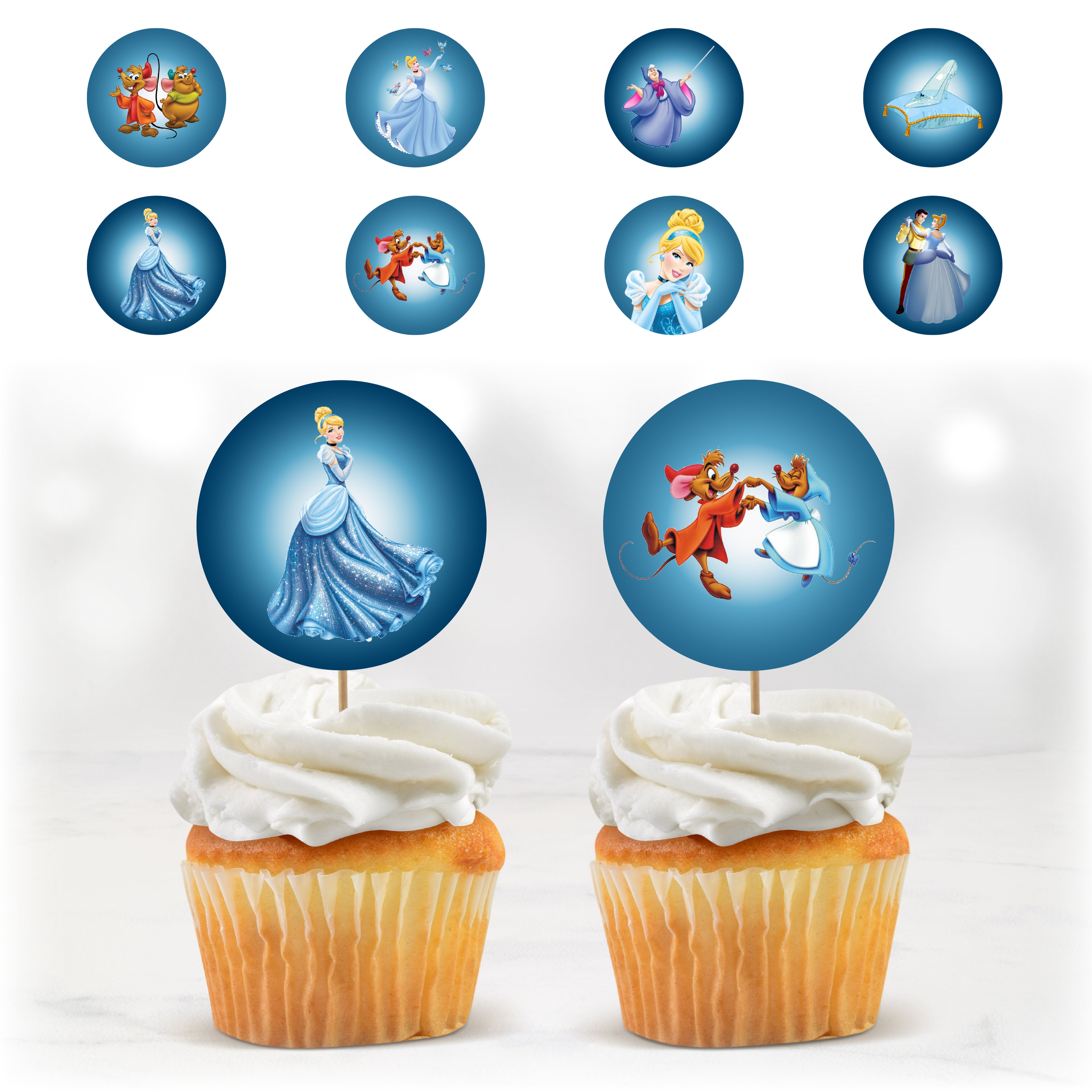 Ensemble de 8 Cupcake Toppers recto-verso à imprimer sur le thème Cendrillon.