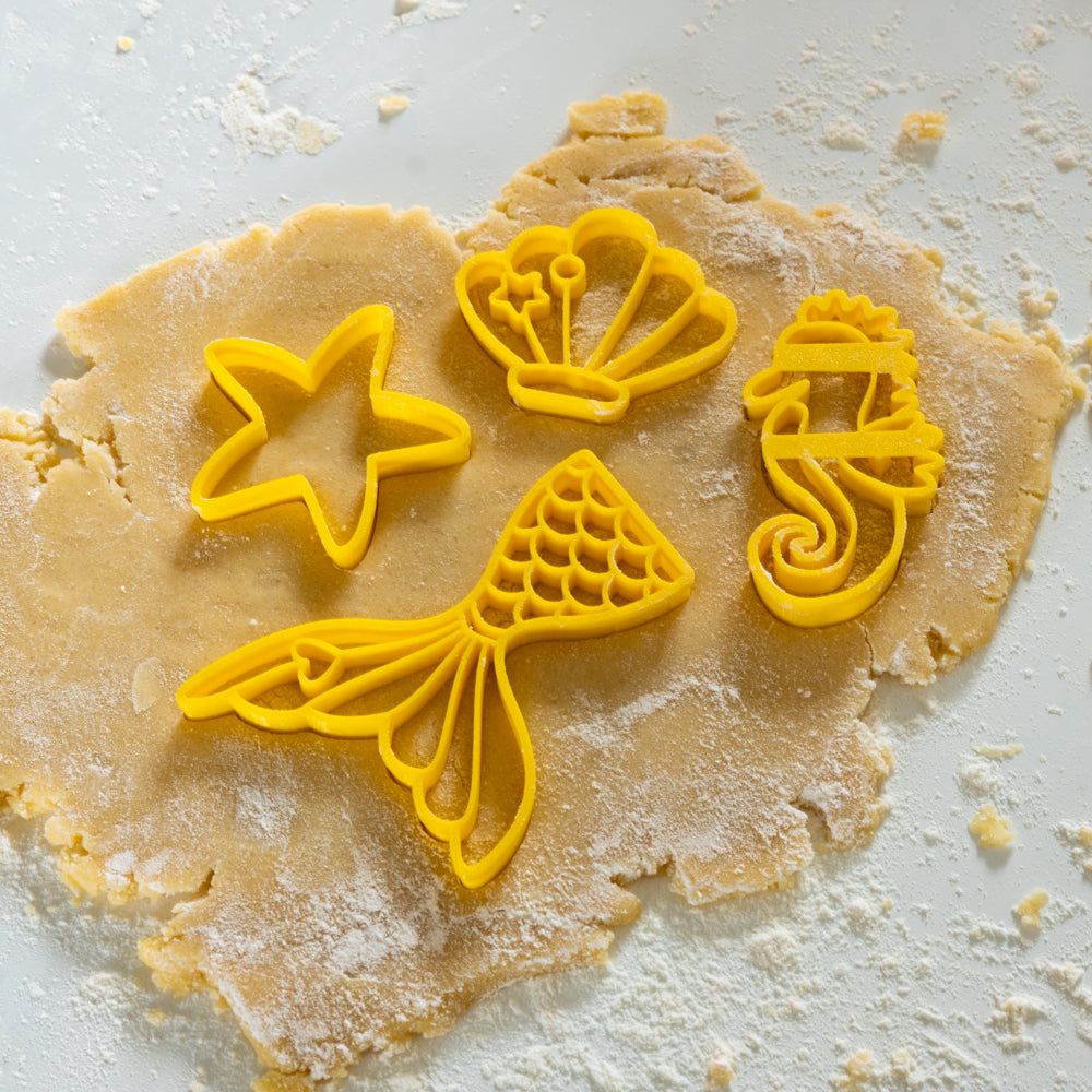• Lot de 4 emporte-pièces composé d'une queue de Sirène, d'un hippocampe, d'une étoile de Mer et d'un coquillage.