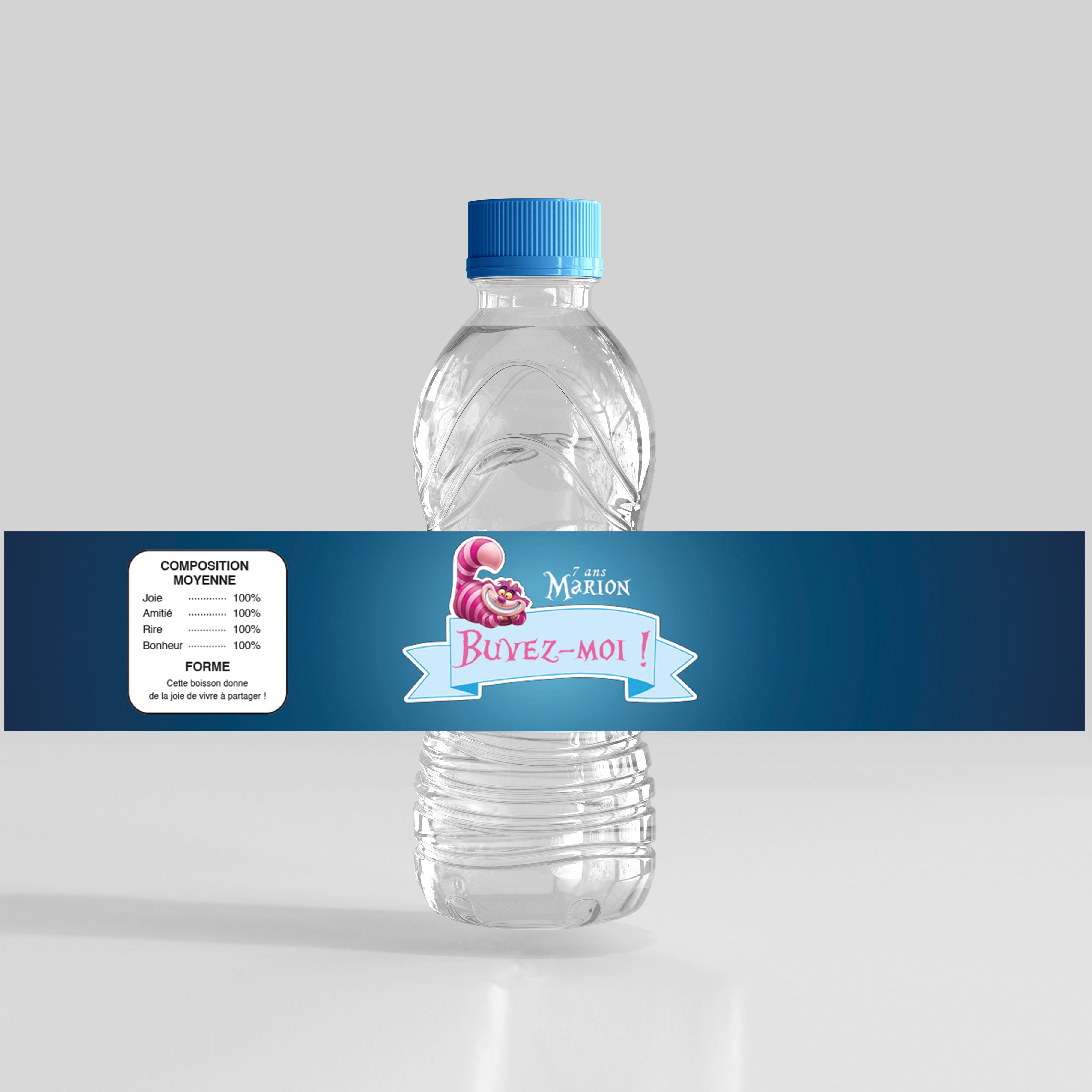 Voici une étiquette de petite bouteille à personnaliser sur le thème de Alice au pays des merveilles, à imprimer et à coller tant que vous le voulez pour une décoration de table de fête tendance et soignée sur le thème de votre choix !