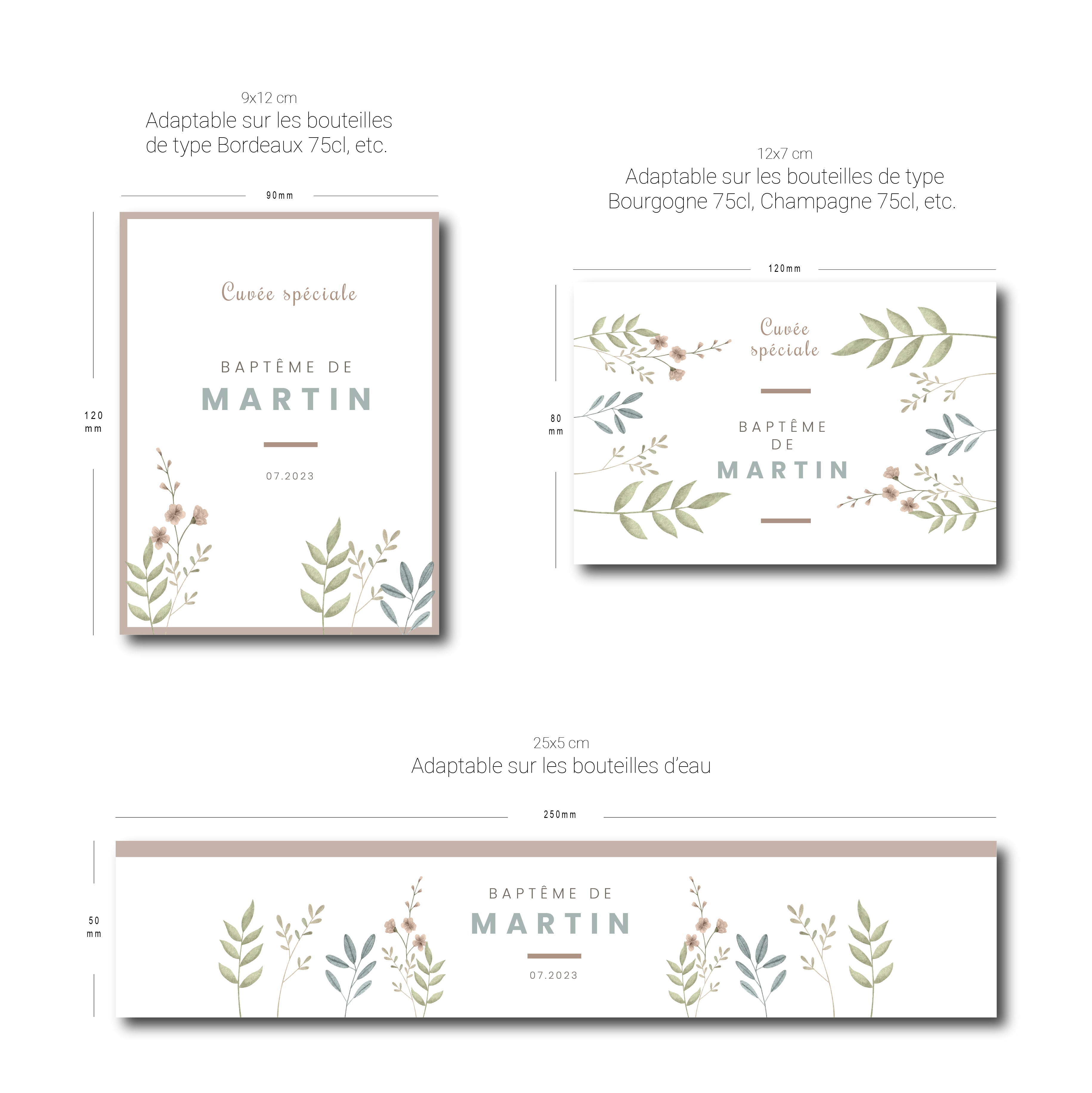 Avec ce lot de 3 étiquettes pour bouteilles assortis personnalisées, vos bouteilles seront relookées avec originalité pour créer de jolies tables pour le baptême de votre enfant.
