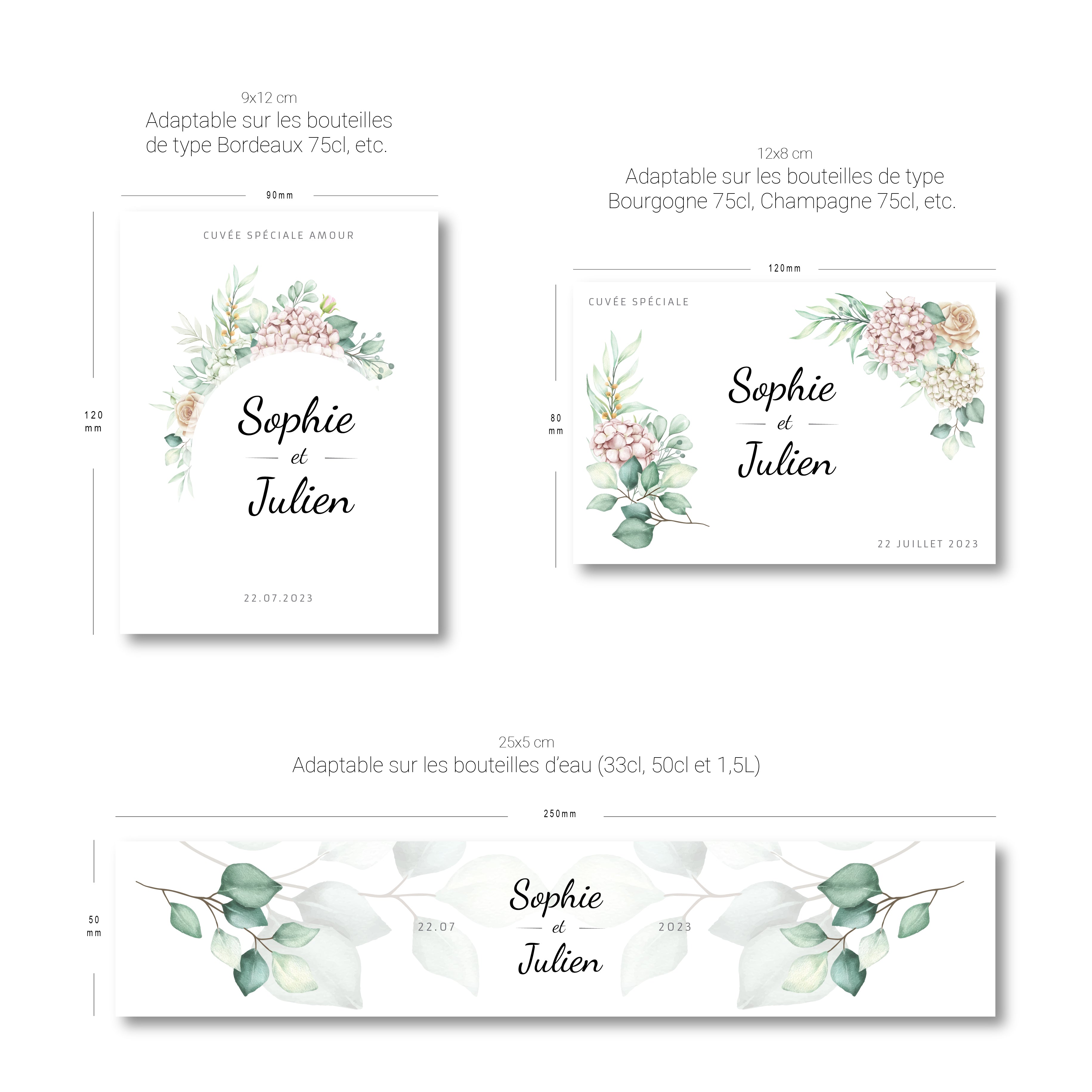 Avec ce lot de 3 étiquettes pour bouteilles assortis personnalisées, vos bouteilles seront relookées avec originalité pour créer de jolies tables pour votre mariage.