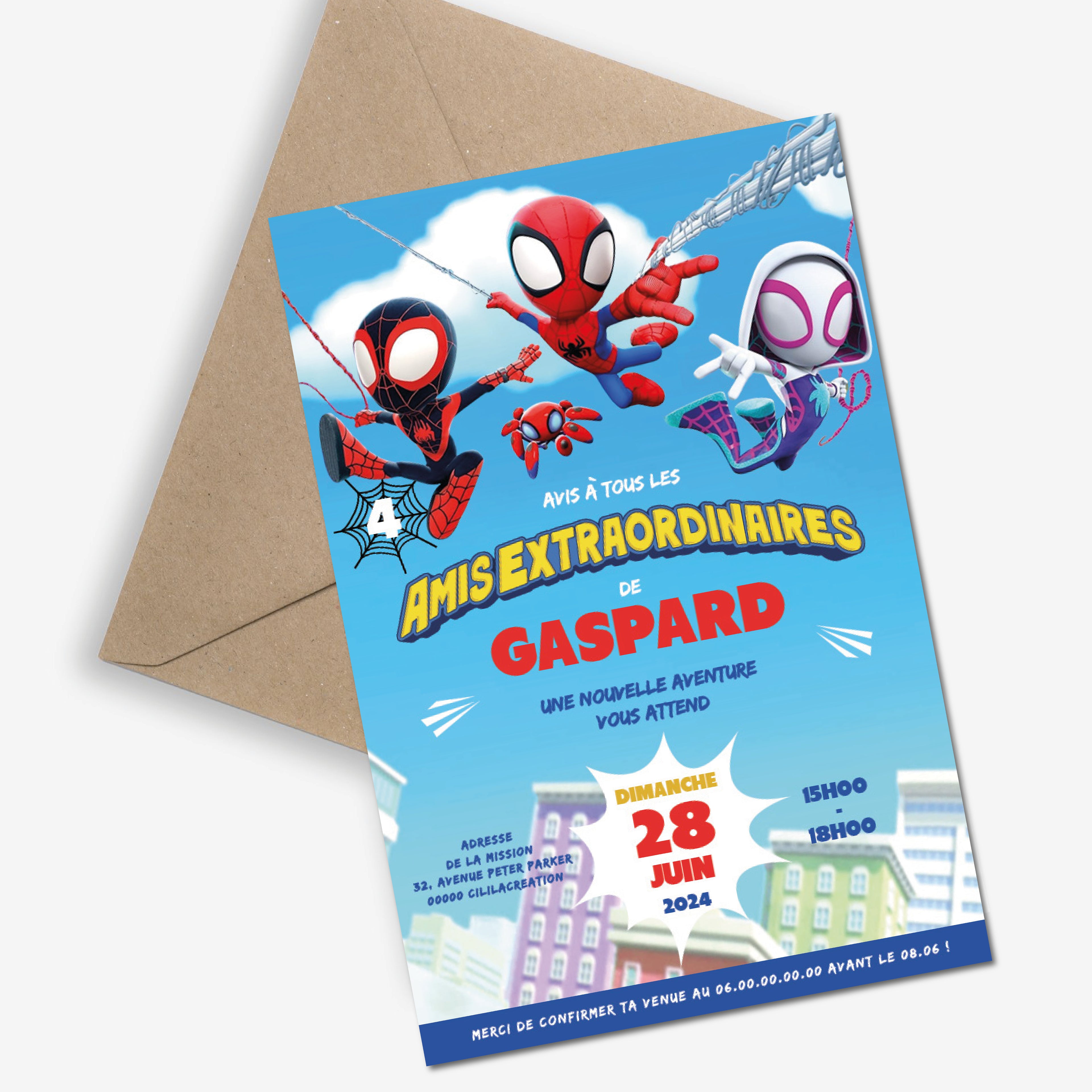 Invitation anniversaire personnalisable - Spidey et ses amis extraordinaires