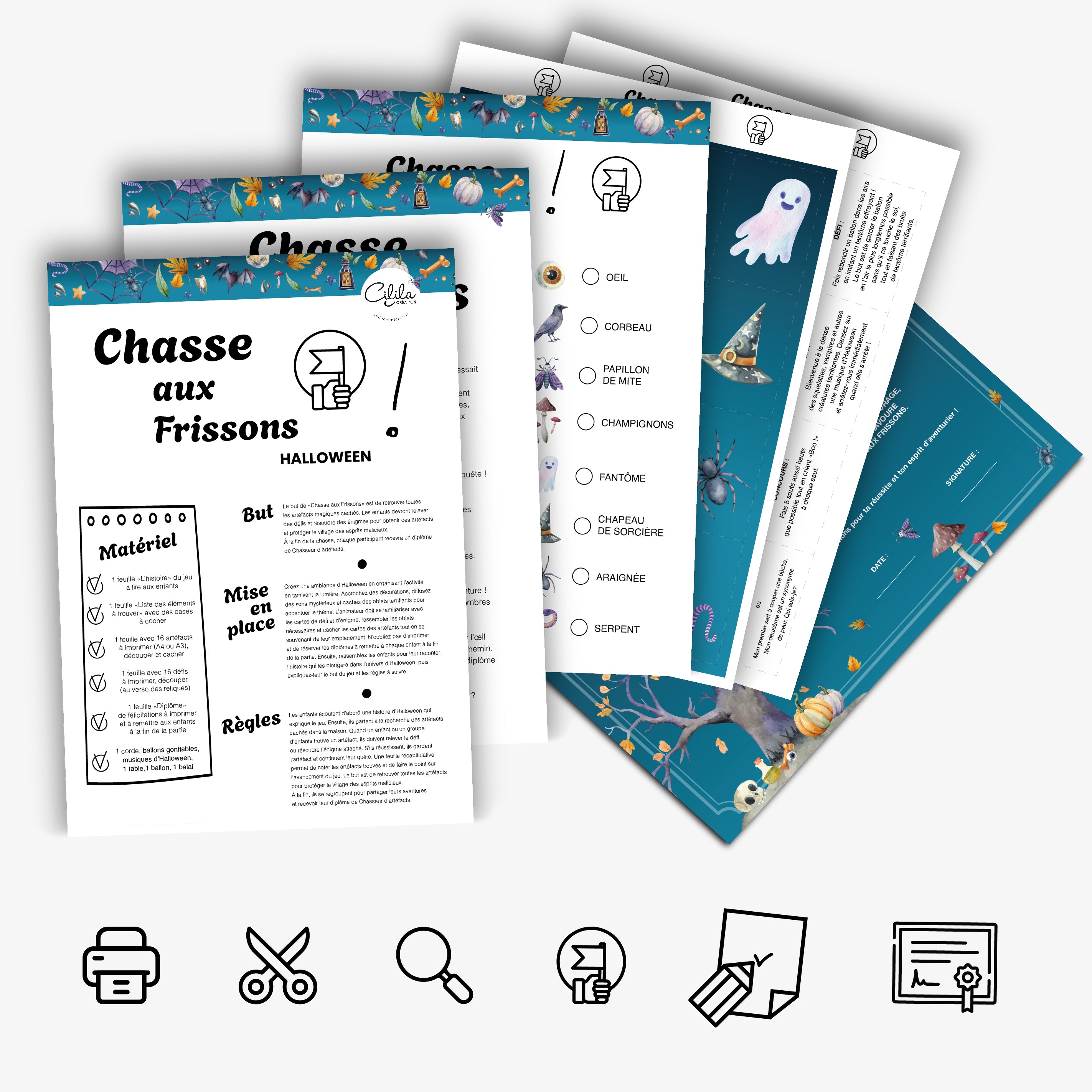 Organisez un anniversaire ou une fête d'Halloween inoubliable avec la "Chasse aux Frissons" ! Les enfants partiront à la recherche d'objets cachés et relèveront des défis amusants dans une ambiance terrifiante. Facile à organiser, ce jeu garantit une soirée pleine de surprises et de rires effrayants !