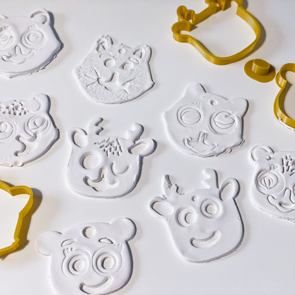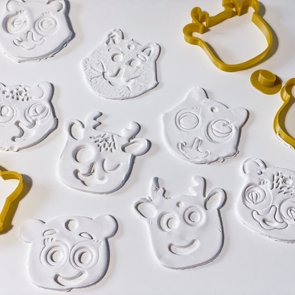• Kit composé de 3 emporte-pièces têtes ( Renne, Raton laveur, Ours), 6 tampons, 6 petits emporte-pièces