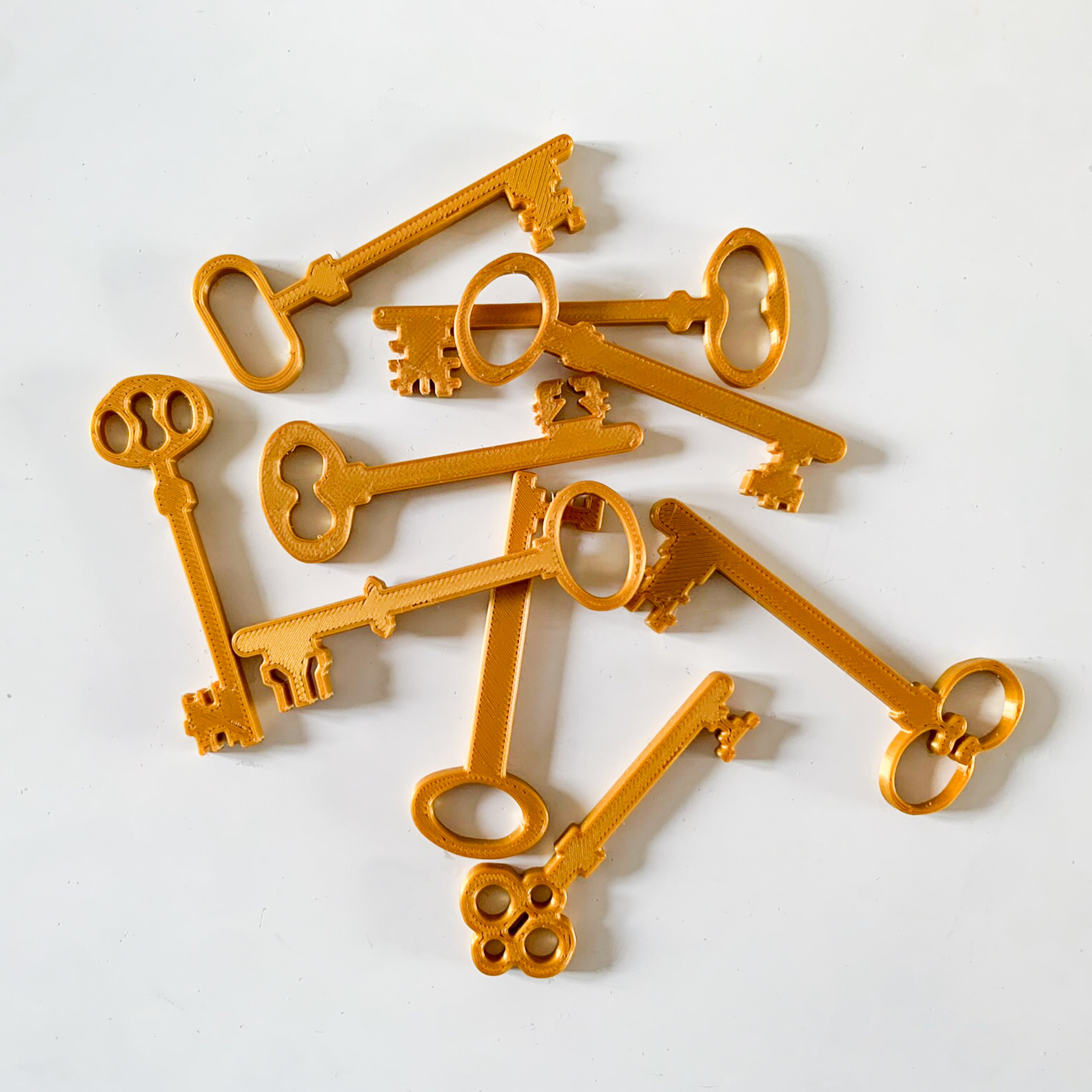 Apportez une touche d’immersion et de réalisme à vos animations avec ce lot de 9 clés imprimées en 3D. Ces clés sont parfaites pour animer des jeux thématiques comme une chasse au trésor, des épreuves inspirées de Fort Boyard, des aventures de pirates ou de sorciers. Bien plus réalistes que des accessoires en papier, elles plongent vos participants dans une expérience captivante et mémorable. Légères et faciles à manipuler, elles sont idéales pour les enfants et les adultes, tout en étant suffisamment robustes pour une utilisation ludique, à condition d’éviter une exposition à une chaleur excessive !