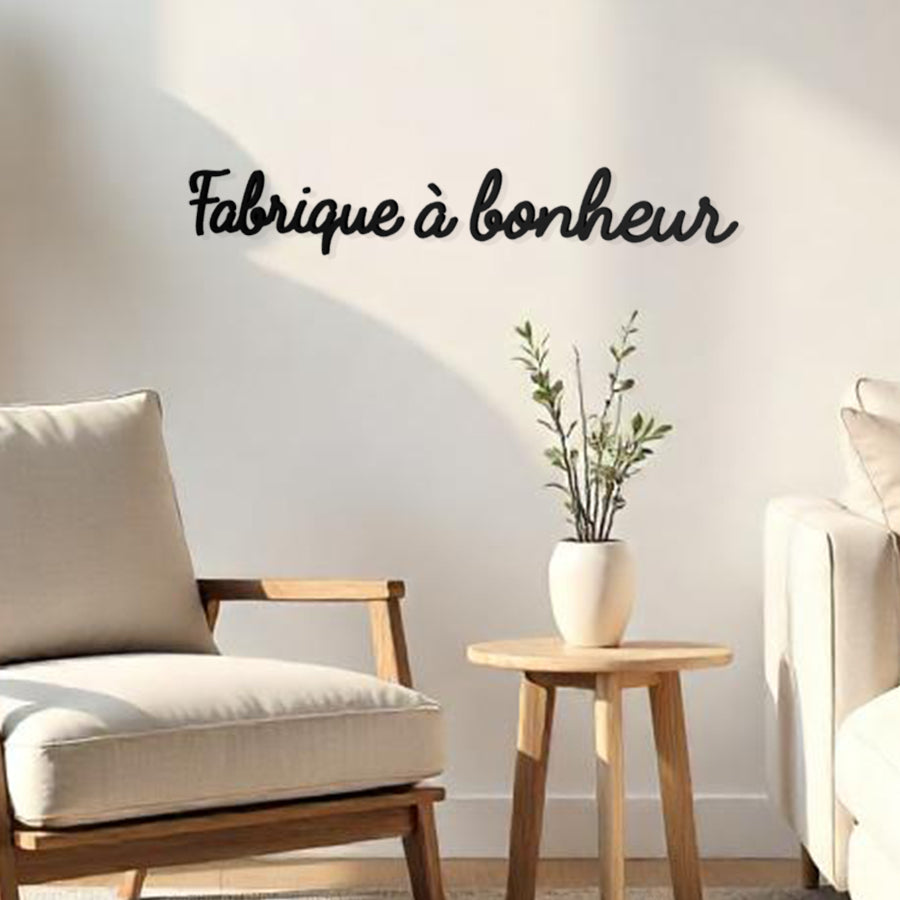 Apportez une dose de bonheur à votre intérieur avec notre enseigne "La Fabrique du Bonheur" ! Cette phrase inspirante est disponible dans 3 tailles et dans plusieurs couleurs pour s’adapter parfaitement à la pièce que vous souhaitez. Que ce soit pour votre salon, chambre ou bureau, cette enseigne apportera une touche de positivité et d'originalité à vos murs. Facile à installer avec de la pâte à fixe, de la colle ou de l'adhésif double face (non fournis), elle s’intègre à tous les styles d’intérieur.