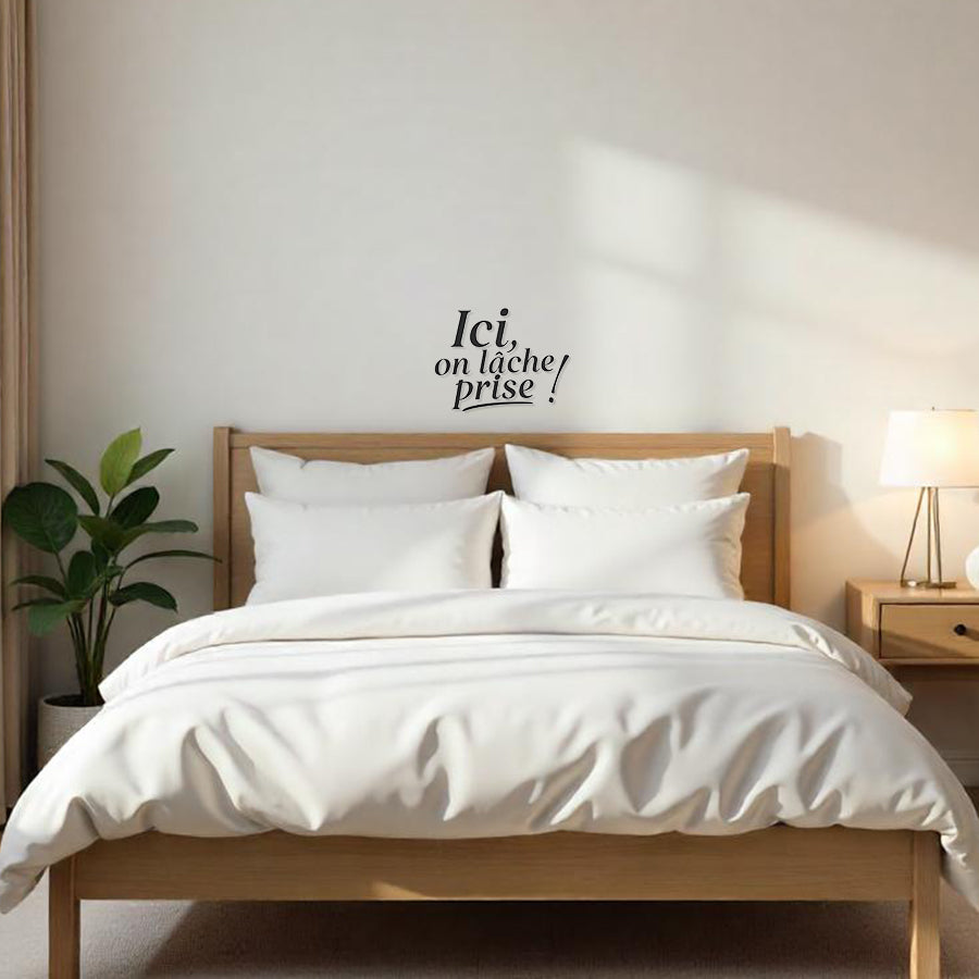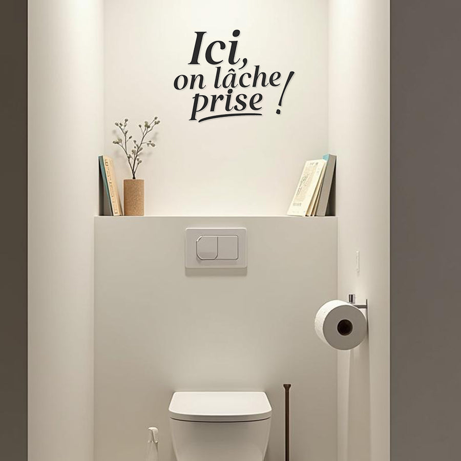 Apportez une touche décalée à votre espace avec notre phrase "Ici, on lâche prise !". Que ce soit pour décorer les toilettes, la salle de musique pour se défouler, le lit pour une pause détente, ou le salon pendant l’apéro, chacun a sa façon d’interpréter le lâcher-prise. Disponible en deux tailles et plusieurs couleurs, elle s’adapte à tous les styles avec humour et caractère.